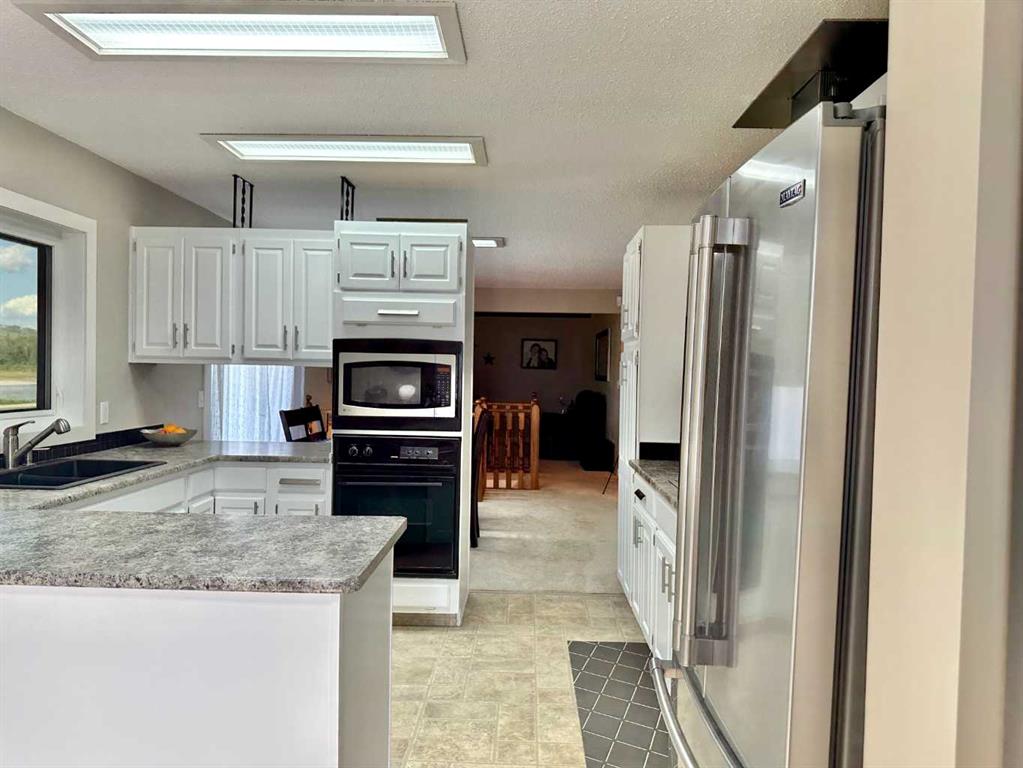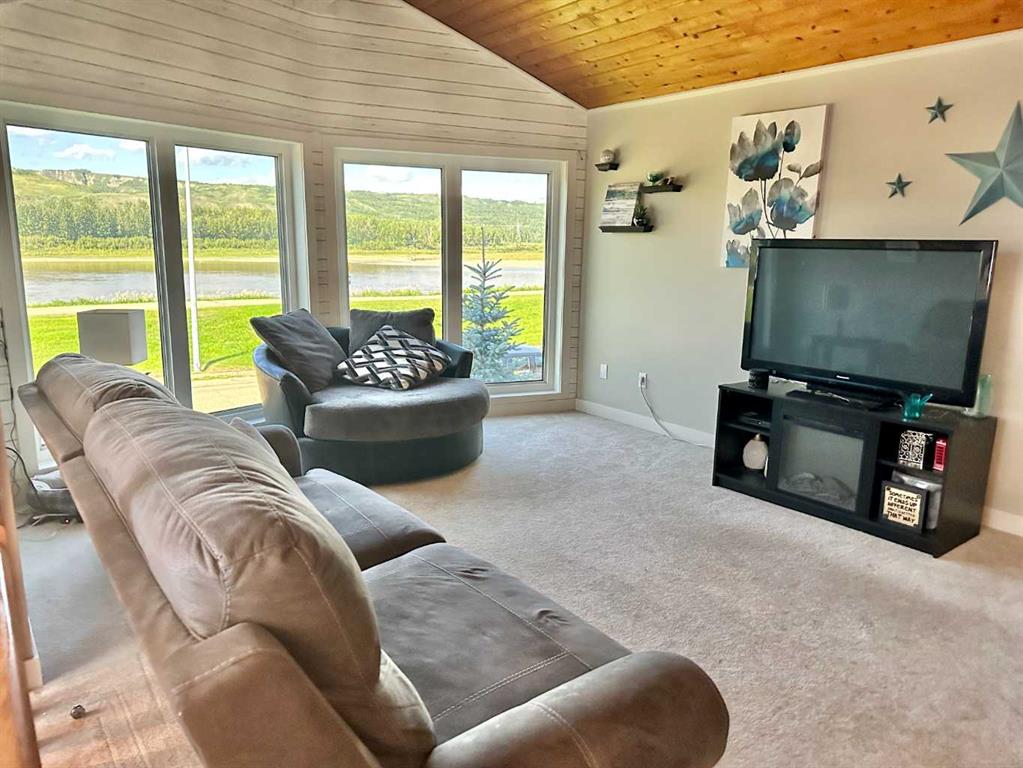 The wait is over and you have a motivated seller! The perfect combination when you are looking to buy! Your dream home with the amazing views is ready and waiting. Immerse yourself in the tranquil ambiance, where you can enjoy the gentle flow of the mighty Peace River right outside your windows. Expansive views of the lush valley and beautiful river greet you everywhere you look. This custom home was designed around the views and does not disappoint. Every window along the front of the house showcases the scenery. The wrap around deck gives you outdoor space to also be able to take it all in. This home is completely finished up and down and hosts some updates and renovations like paint, fixtures, and bathroom fresh-ups. The upper level hosts 2 bedrooms and 2 bathrooms plus the roomy kitchen and dining room with patio doors off to the deck plus the large living room with soaring wood vaulted ceilings. The lower level is all above grade giving you big windows and lots of light and provides you with two more bedrooms, a bathroom, laundry/utility room and then a big family room with cozy fireplace and extra space for a games room or pool table! The landscaped yard is beautiful front and back and there is a 24x24 detached garage offering up plenty of parking. Speaking of parking, there is a long, paved driveway- perfect for an RV or boat and there is a covered carport in the front of the house to keep your vehicle protected from the elements. Location matters most and this home offers up a desirable location with breathtaking views! Book a private showing today!