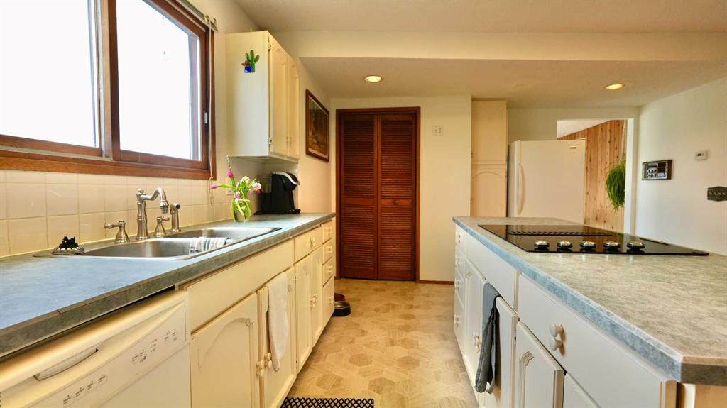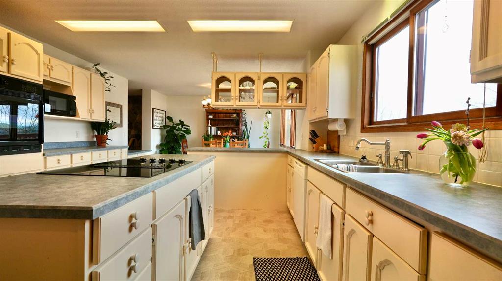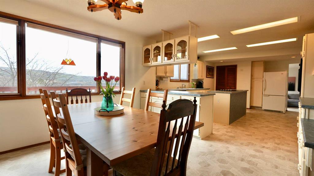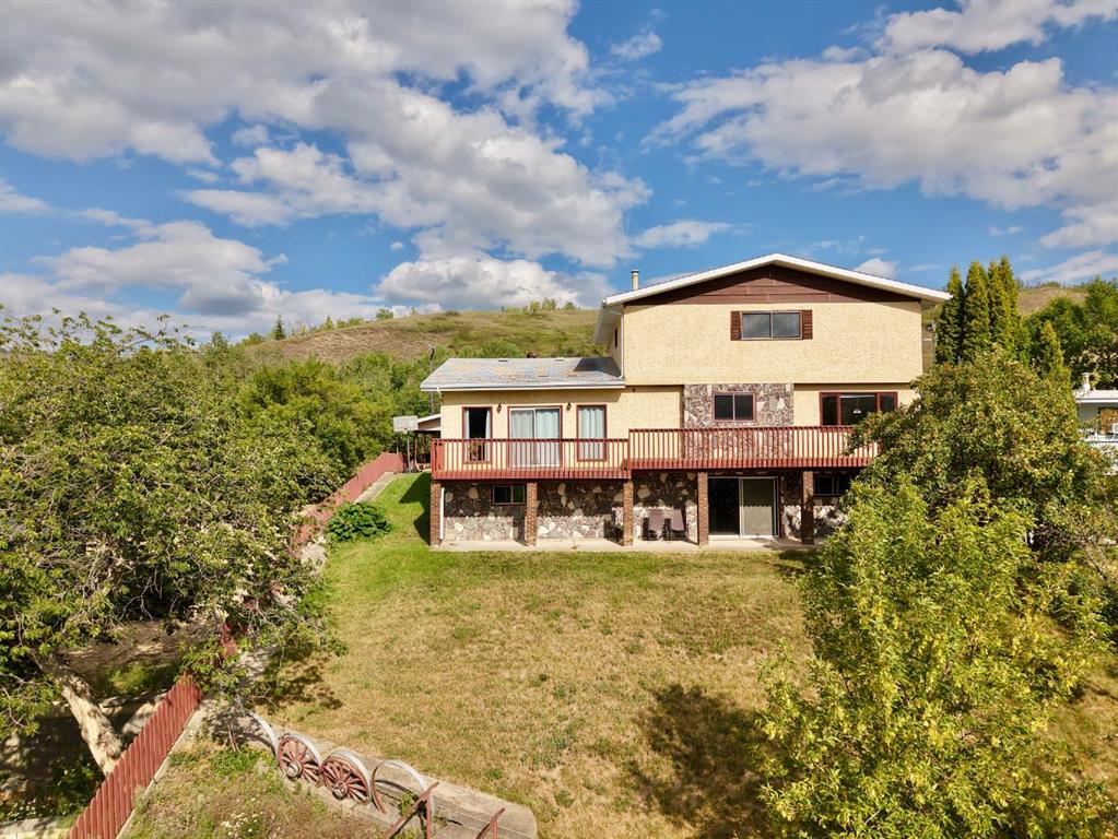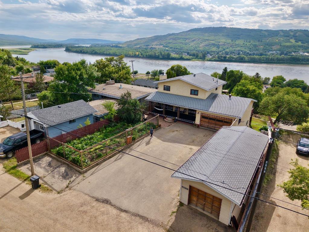Stunning Home with Panoramic Views & Room to Grow! Perched high on a scenic hilltop, this full of character home offers breathtaking views over the town, rolling hills, and mighty Peace River. With timeless charm and generous living space, this 5-bedroom residence is perfect for families seeking comfort, style, and privacy. Step inside to discover a warm and inviting interior filled with natural light and rich character details. A spacious kitchen and dining room offer up the spectacular views that will never get old! Storage galore and with plenty of prep space, this heart of the home kitchen is sure to delight. Or enjoy the formal sitting room with fireplace or cozy family room-a great place for movie night and enjoying the twinkling lights of town. The upper level provides 4 of the 5 bedrooms which is a not too often found feature-4 bedrooms all on one level! The fully finished walk-out basement adds exceptional versatility—ideal for a home office, guest suite, or recreation area. There is bar area plus plenty of storage making this space easy to use and there is even a sauna offering you a relaxing escape to rest your tired body after a long day. Enjoy the convenience of a double attached garage, plus a separate single detached garage—perfect for extra storage, a workshop, or your weekend vehicle. Or use it like the current owners do and keep it for a home gym! Set on a spacious and private lot, the property is a peaceful retreat with lots of yard space and a fenced in garden plot allowing you to exercise your green thumb and grow your own produce. Don’t miss this rare opportunity to own a truly special home with unmatched views and endless potential.