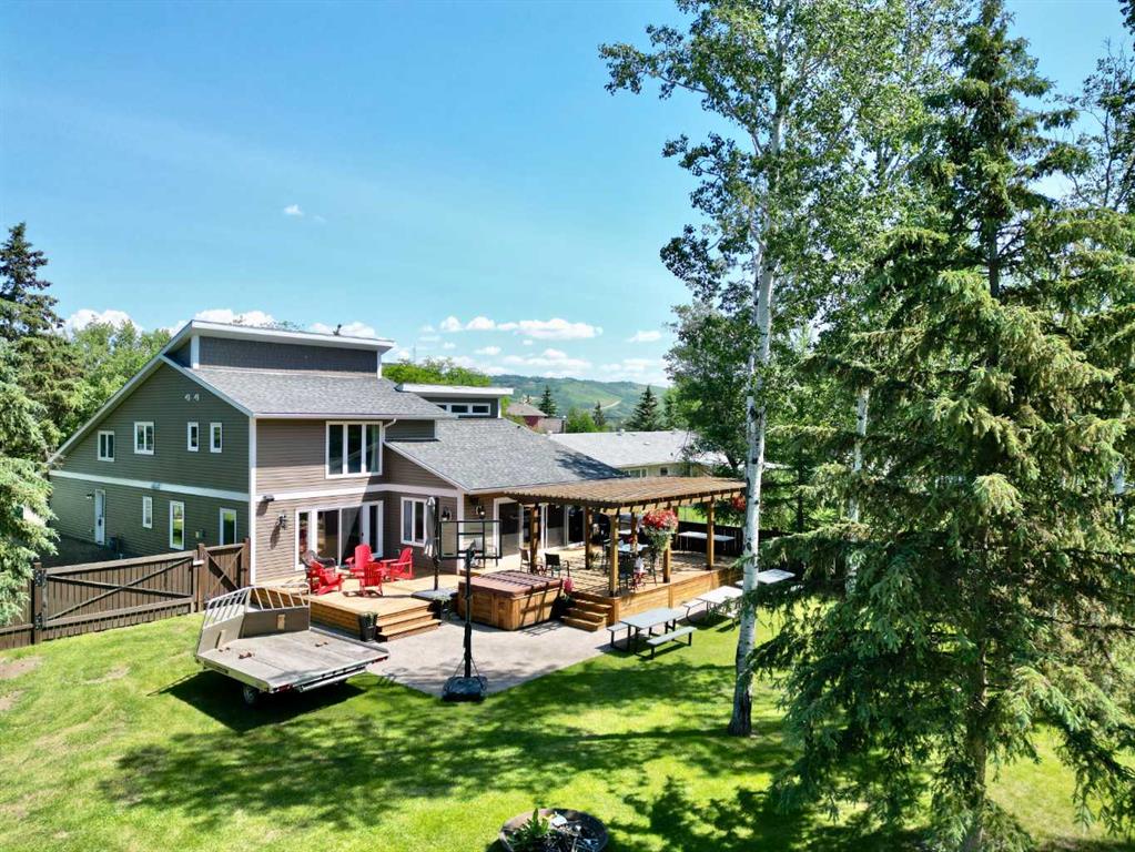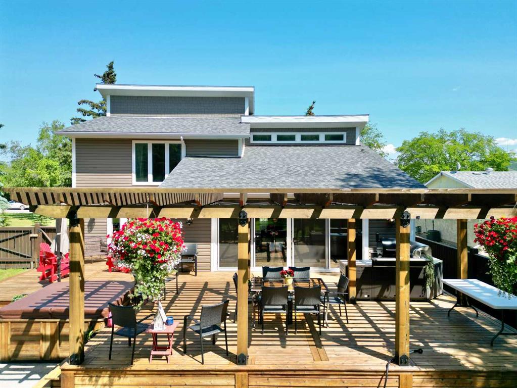 Spacious and updated split level home with stunning outdoor living spaces! The Pines is unlike any other neighbourhood in Peace River with its strong community spirit where everyone here knows each other and keep an eye out for one another! The true gem of this property is the expansive backyard oasis! Thoughtfully designed for relaxation and entertaining, it features lush landscaping, multiple outdoor seating areas and a large deck-perfect for summer barbeques or quiet evenings spent under the stars. This particular lot measures 0.47 acres. It is fully fenced and the trees help it to feel privately enclosed. Not to be forgotten though is the equally impressive house that has been lovingly cared for and extensively renovated! Step inside to discover an inviting, updated interior featuring an open and airy layout with abundant natural light. The main level boasts a stylish kitchen with ample cabinetry and a very functional layout that makes cooking and entertaining a joy. The kitchen also overlooks the massive dining room that offers large patio doors to take you outside. This dining room is second to none and will fit the largest of tables! Just off the kitchen is a cozy family room with fireplace, 3/4 bathroom and laundry and access to the lower level and double attached garage. The main level also provides you a flexible space currently being used as a home office but it could be used as a formal living room space if you prefer. The upper level hosts the bedrooms and the two updated and renovated bathrooms. Uniquely laid out but efficient in its use of space, this layout helps keep family together on one level while giving everyone their own space. The lowest level is partially finished but offers up a blank canvas for you to design as you see fit. This beautiful property offers updated finishes and modern touches throughout combined with generous square footage and flexible living spaces plus ample storage and an attached garage all with a prime location close to it all. Get the best of both worlds here! A peaceful retreat with plenty of space to entertain. Don't miss this incredible opportunity. Schedule your private showing today!