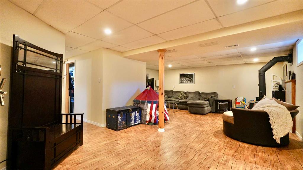 Lovingly Cared For & Move-In Ready – Fully Developed Bungalow with Beautiful Outdoor Living! This 1171 sq. ft. bungalow has been lovingly cared for, thoughtfully updated, and well maintained throughout—offering the perfect blend of comfort, charm, and functionality. Nestled in a quiet, desirable neighborhood, this home boasts a fully fenced and beautifully landscaped backyard complete with a huge deck, garden, firepit, and plenty of room to play or relax. It’s a perfect space to enjoy long summer days with family and friends. Inside, you’ll find 4 bedrooms and 2 full bathrooms, including a spacious primary suite with a walk-in closet. The kitchen is bright and refreshed, featuring a convenient breakfast bar and open layout that flows seamlessly into the dining and living rooms. Rich hardwood floors and large windows add warmth and natural light to the main level, creating an inviting atmosphere. The fully finished basement offers even more living space with a large, cozy family room anchored by a wood stove—ideal for movie nights or relaxing in cooler months. A fourth bedroom, second full bathroom, generous laundry room, and ample storage complete the lower level. This is a home that has clearly been loved and well maintained over the years—and it shows in the details. Don’t miss your chance to own this move-in ready gem!