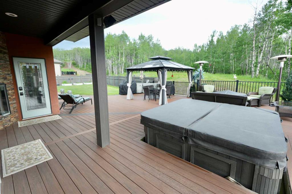 A True Custom Masterpiece – Where Quality, Comfort, and Craftsmanship Meet! This exceptional custom-built home is truly one of a kind—crafted with care, designed with precision, and built with no expense spared. Every detail has been thoughtfully planned, from the impressive garage to the luxurious outdoor living space and everything in between. Step inside and discover a home that’s as functional as it is beautiful. The chef-inspired kitchen features quality appliances, custom cabinetry, and plenty of space for entertaining in the adjacent dining and living areas. A cozy gas fireplace adds warmth and charm, making it the perfect place to gather with family or friends. With four spacious bedrooms and three bathrooms, there’s plenty of room for everyone. The oversized garage is a showstopper in itself—complete with two vehicle lifts, soaring ceilings, and an abundance of storage. Car enthusiasts will be in their element here! Outside, you’ll find an outdoor living space that rivals any resort. Top-of-the-line composite decking, a built-in outdoor kitchen, a relaxing hot tub, and a see-through fireplace create an inviting retreat designed for year-round enjoyment. With no neighbors behind, you’ll love the privacy and open views. The beautifully designed driveway and retaining wall not only add stunning curb appeal but also provide a dedicated RV parking pad with hookups. Downstairs, the fully finished basement is all about entertainment—featuring a custom bar and a comfortable theatre room ideal for movie nights or game days. Additional highlights include acrylic stucco, in-floor and forced-air heating (both zoned for comfort), central air conditioning, a built-in speaker system, and a fully monitored security system that tracks temperature, humidity, carbon monoxide, and fire for peace of mind. This home was built to impress and meant to be enjoyed. All the planning, upgrades, and finishing touches have already been done—simply move in and start living your dream. Don’t miss your chance to experience this incredible property—call today to book your private viewing!