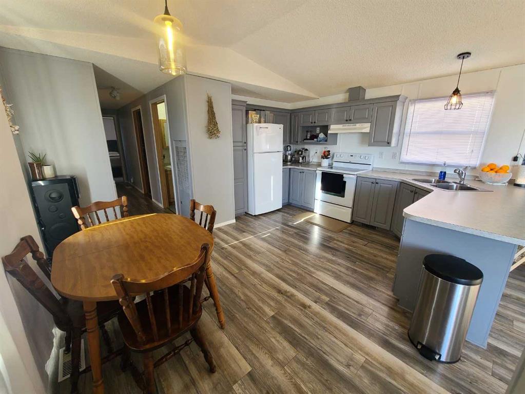 Bright, Spacious & Move-In Ready – All at an Affordable Price! Fresh, bright, and ready for you to move right in! This four-bedroom, two-bathroom home checks all the boxes and offers just over 1,600 sq. ft. of comfortable living space. You’ll love the thoughtful design that combines function and flexibility — perfect for families or anyone needing extra room to spread out. This property offers the best of both worlds: a well-maintained mobile home with a large 20x20 addition for extra living space, plus you own the lot—a huge bonus that adds value and stability. The spacious addition serves as a welcoming front or back entry, complete with a super-sized closet ideal for coats, shoes, and all your everyday gear. It’s versatile enough to double as a home office, hobby space, or cozy TV room, and it opens directly onto the back deck for easy outdoor access. The main living area features a bright, open layout with a large U-shaped kitchen and adjoining dining area—perfect for family meals or entertaining. There’s also a second living room for even more space to relax and unwind. With two bedrooms and a full bathroom on one end of the home and two more bedrooms and another bathroom on the opposite end, everyone gets their own space and privacy. Outside, the fenced yard offers plenty of room to play or garden, and there’s back alley access, a handy storage shed, and space to add a garage if you wish. This property is a fantastic, affordable alternative to renting—offering the freedom and comfort of homeownership at a price that makes sense. Don’t wait to see it—this one is move-in ready and waiting for you!