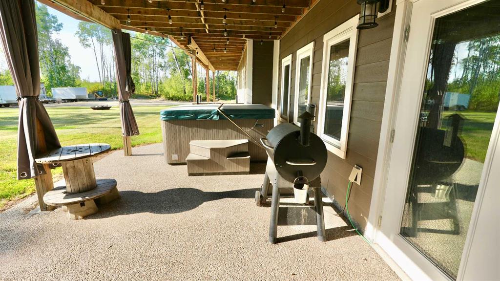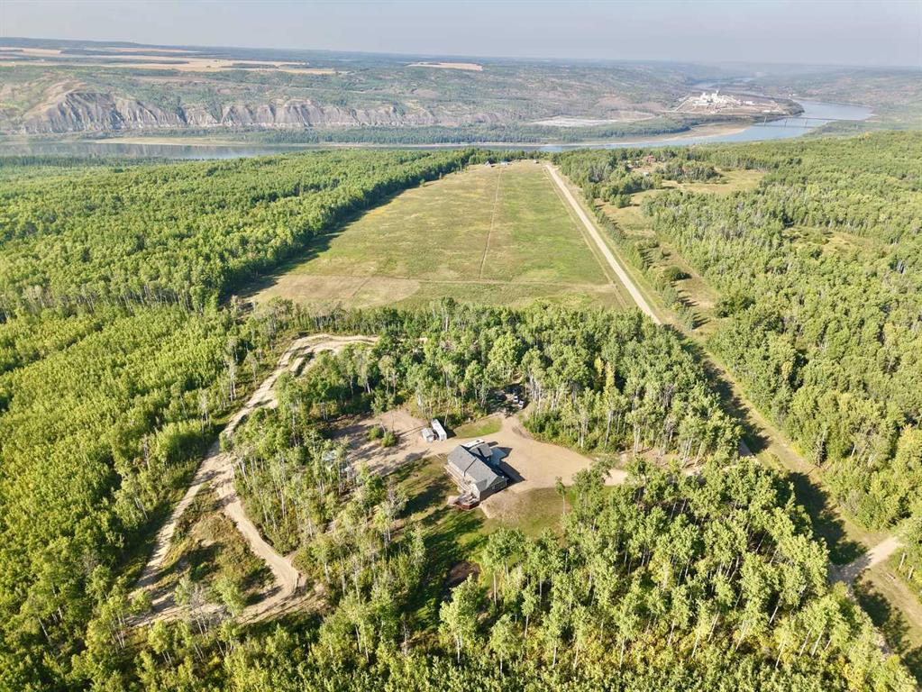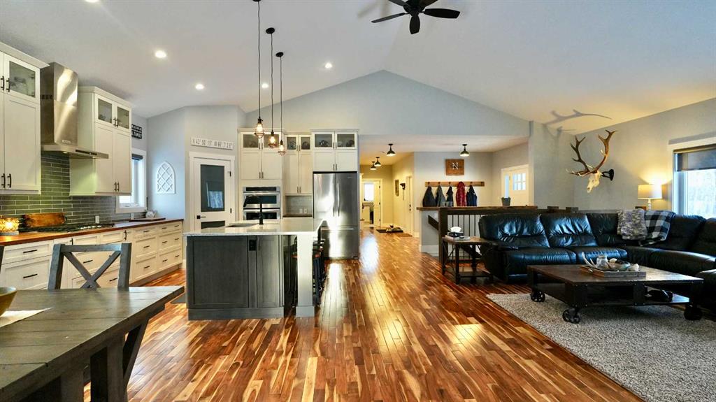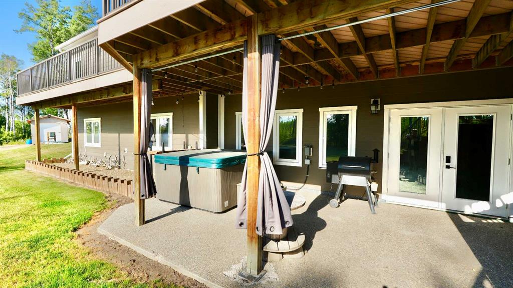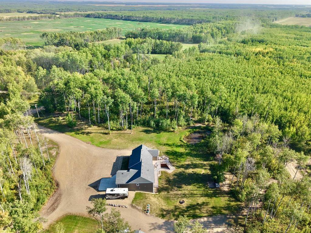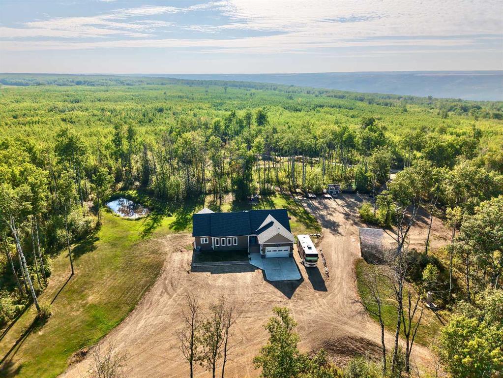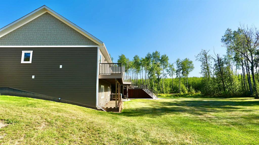 Welcome to your luxurious acreage retreat just minutes northeast of Peace River. This exceptional 2014 custom-built home is a rare offering, perfectly set on 9.98 acres of thoughtfully designed land bordered by breathtaking forest and surrounded by thousands of acres of pristine Crown land. Nature lovers and outdoor enthusiasts will appreciate the direct access to the stunning Peace River Valley and the unmatched privacy this setting provides. With nearly 2,100 sq ft of beautifully designed living space, plus a fully finished walkout basement, no detail has been overlooked in this impressive home. The heart of the home is the bright, open-concept kitchen, dining, and living area—ideal for everyday living and entertaining. The spacious kitchen features an abundance of cabinetry, a large island with eat-up bar, walk-in pantry, quartz and butcher block countertops, and tile backsplash. The oversized living room showcases vaulted ceilings that enhance the sense of space and light, while the adjacent dining area offers easy access to the back deck and BBQ area through patio doors. The main floor is anchored by a private and spacious primary suite that truly feels like a retreat, complete with a walk-in closet and a magazine-worthy ensuite featuring double sinks, a soaker tub, and a tiled shower. On the rest of the main level you will find two more generously sized bedrooms, a full bathroom, and a convenient laundry area with ample space for folding and storage. The fully developed walkout basement adds exceptional versatility and plenty of natural light, offering a large recreation room with wet bar, a full bathroom, and two additional large bedrooms—perfect for guests, family, or entertaining. There is also storage and a convenient office/computer nook. Additional highlights include a 21x24 attached heated garage with room for vehicles, storage, or a workshop. The beautifully landscaped yard features a greenhouse and storage shed, while the back deck provides shade over the lower patio and a private hot tub area—an ideal spot to relax and unwind. The remainder of the property is treed and private, with a site already prepared for a future shop and even a dirt bike track, making it a dream for kids or riding enthusiasts. Experience the perfect blend of luxury, privacy, and outdoor adventure—this remarkable acreage truly offers it all.