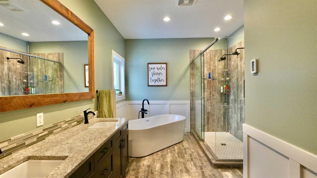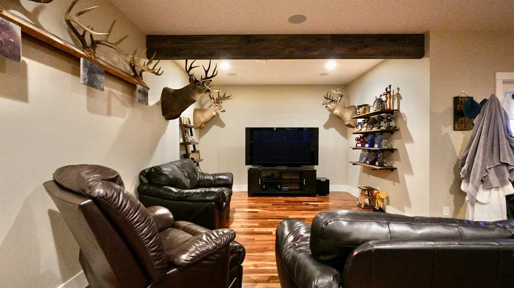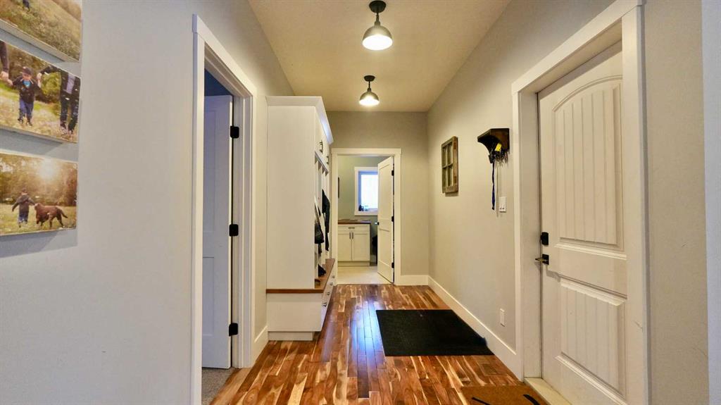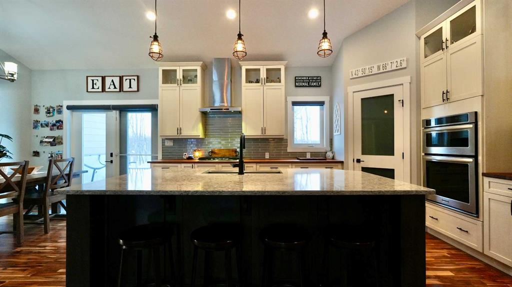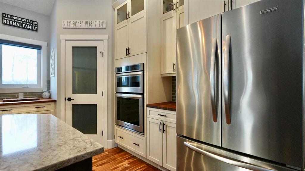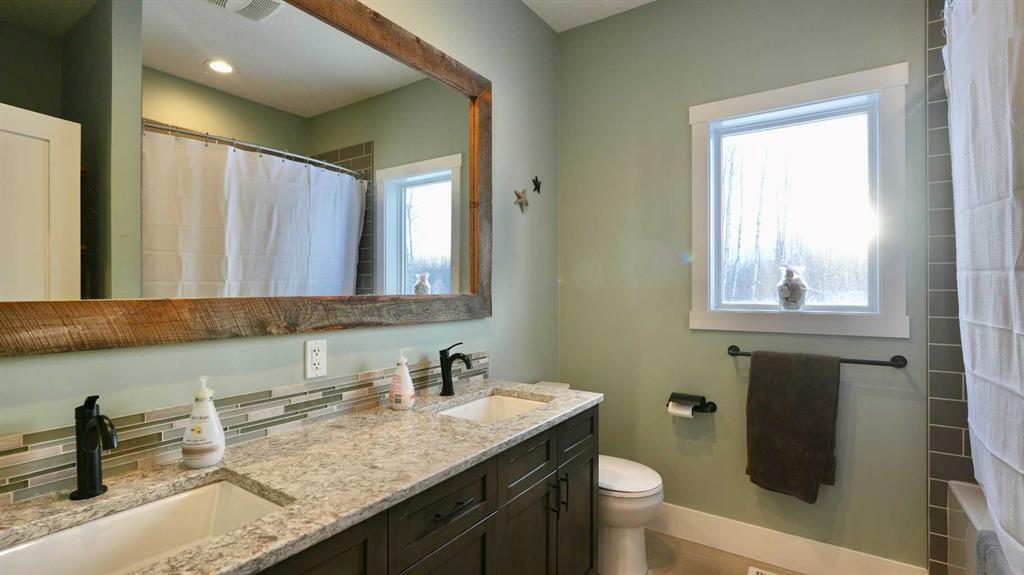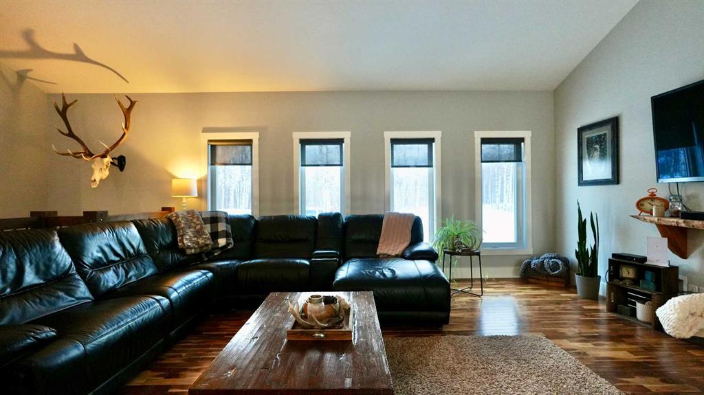 Welcome to your luxurious acreage retreat just minutes northeast of Peace River. This exceptional 2014 custom-built home is a rare offering, perfectly set on 9.98 acres of thoughtfully designed land bordered by breathtaking forest and surrounded by thousands of acres of pristine Crown land. Nature lovers and outdoor enthusiasts will appreciate the direct access to the stunning Peace River Valley and the unmatched privacy this setting provides. With nearly 2,100 sq ft of beautifully designed living space, plus a fully finished walkout basement, no detail has been overlooked in this impressive home. The heart of the home is the bright, open-concept kitchen, dining, and living area—ideal for everyday living and entertaining. The spacious kitchen features an abundance of cabinetry, a large island with eat-up bar, walk-in pantry, quartz and butcher block countertops, and tile backsplash. The oversized living room showcases vaulted ceilings that enhance the sense of space and light, while the adjacent dining area offers easy access to the back deck and BBQ area through patio doors. The main floor is anchored by a private and spacious primary suite that truly feels like a retreat, complete with a walk-in closet and a magazine-worthy ensuite featuring double sinks, a soaker tub, and a tiled shower. On the rest of the main level you will find two more generously sized bedrooms, a full bathroom, and a convenient laundry area with ample space for folding and storage. The fully developed walkout basement adds exceptional versatility and plenty of natural light, offering a large recreation room with wet bar, a full bathroom, and two additional large bedrooms—perfect for guests, family, or entertaining. There is also storage and a convenient office/computer nook. Additional highlights include a 21x24 attached heated garage with room for vehicles, storage, or a workshop. The beautifully landscaped yard features a greenhouse and storage shed, while the back deck provides shade over the lower patio and a private hot tub area—an ideal spot to relax and unwind. The remainder of the property is treed and private, with a site already prepared for a future shop and even a dirt bike track, making it a dream for kids or riding enthusiasts. Experience the perfect blend of luxury, privacy, and outdoor adventure—this remarkable acreage truly offers it all.