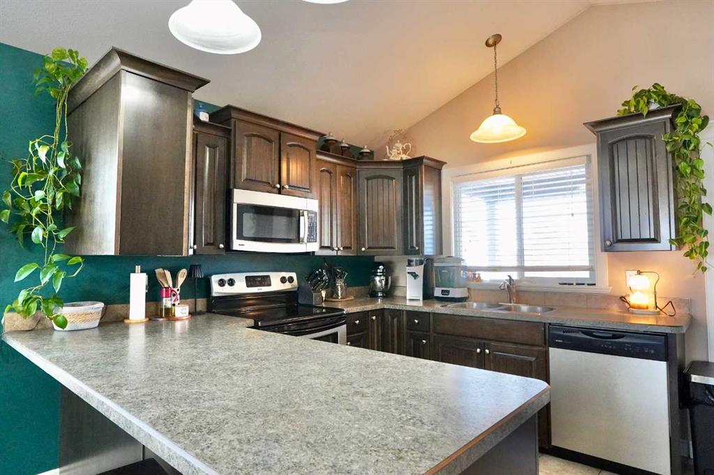Come take a tour of this beautiful and well-maintained bi-level home, perfectly situated in the family-friendly community of Shaftesbury Estates—less than a block from the park and playground, making it an ideal setting for families with children. From the moment you arrive, you’ll appreciate the inviting curb appeal, highlighted by a timeless stucco exterior and a charming covered front veranda. Out back, the home continues to impress with a covered deck, a fully fenced and landscaped yard, and a detached double garage complemented by a large driveway—plenty of space for vehicles, toys, and entertaining. Step inside to a spacious entryway that opens into thoughtfully designed, open-concept main living areas. The generous kitchen features ample cabinetry and counter space, a walk-in pantry, and convenient access to the covered back deck—perfect for summer BBQs or morning coffee. Flowing seamlessly into the dining and living areas, the high ceilings and abundance of windows create a bright, airy atmosphere that feels both welcoming and expansive. The main level offers comfortable bedrooms and a full bathroom, while the lower level provides two additional bedrooms, another full bathroom, and a large family room—ideal for movie nights, play space, or hosting guests. You’ll also find laundry and storage on this level, offering excellent functionality and flexibility for growing families. A newer central air conditioner adds year-round comfort and makes warm summer days a breeze. A wonderful place to call home? Absolutely. This one is a must-see—call today to book your private showing and learn more!